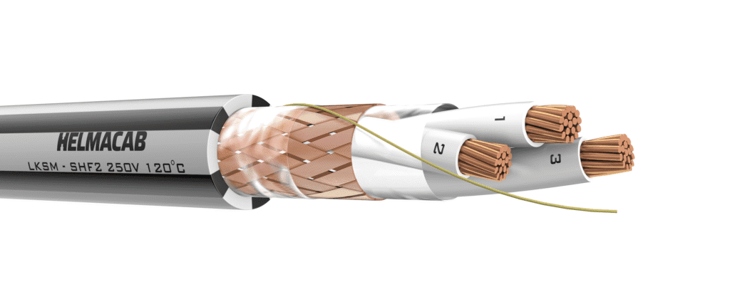 Improved heat resistant SHF2 (120 °C), IEC 60092-360 Standard colour black with grey stripes, other colours on request