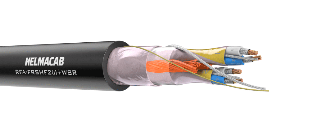 Fire-resistant + Water Spray Resistant and/or Water Jet Resistant armoured pair instrumentation and communication cable. For fixed installation in most areas, and on open deck in ships and offshore units. Especially intended to ensure availability of all critical transportation-, comfort- and safety systems, i.e to meet the concepts of; Orderly Evacuation (3 hours burning time) and Safe Return to Port (Fire test with simultaneous Water Spray/Water Jet + mechanical shocks) to simulate firefighting conditions. If the cable is exposed to direct sunlight, protective covering or cable with black outer sheath is recommended.