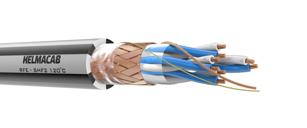 Improved heat resistant SHF2 (120 °C), IEC 60092-360 Standard colour black with grey stripes, other colours on request